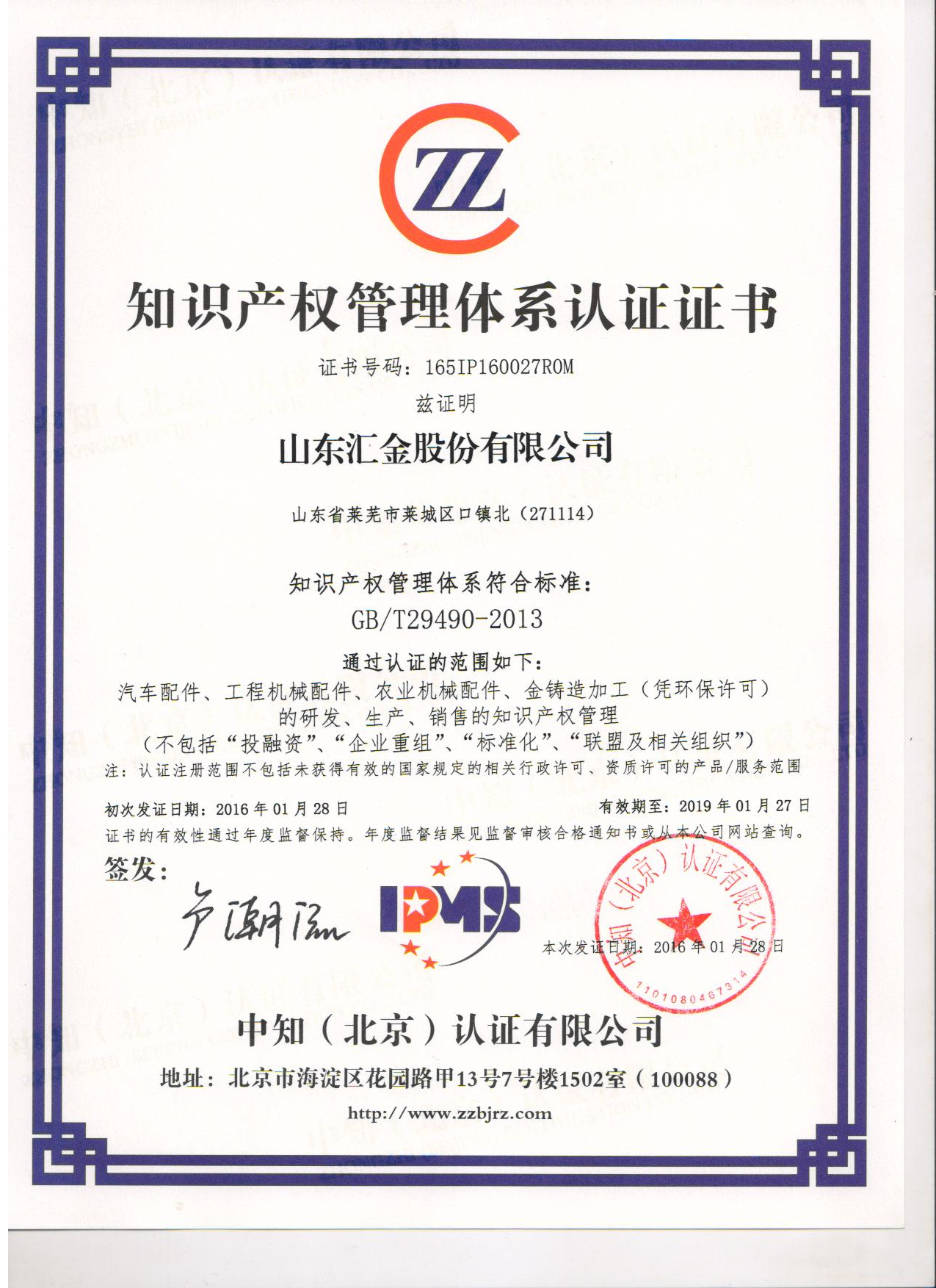 我公司獲得知識(shí)產(chǎn)權(quán)管理體系認(rèn)證證書