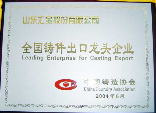 "我公司獲“全國鑄件出口龍頭企業”稱號"