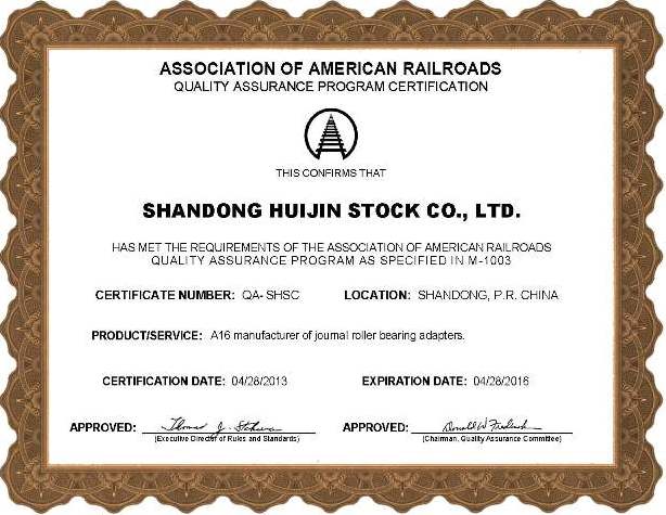 公司通過美國鐵路協會AAR認證